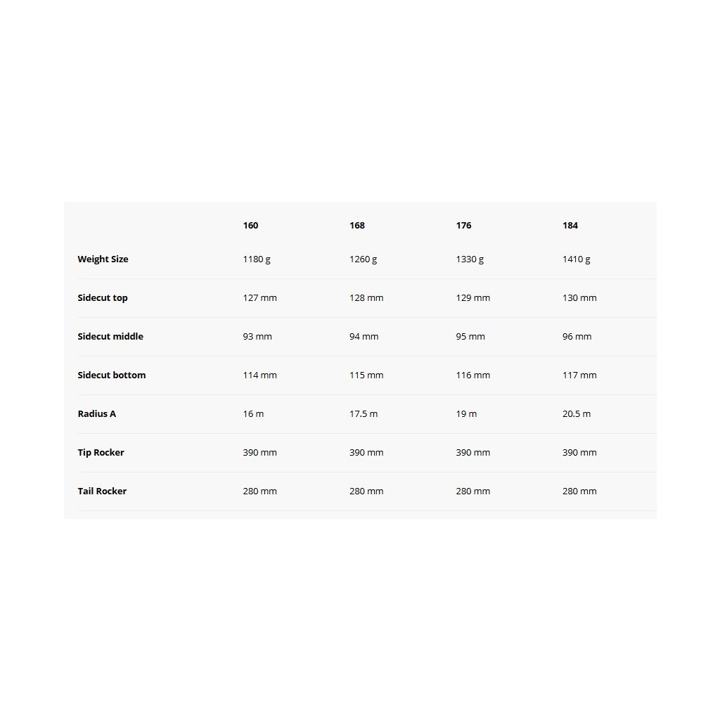 - Directional flex: mäkká špička pre ľahké začatie oblúku, tvrdá päka pre stabilitu a presnosť