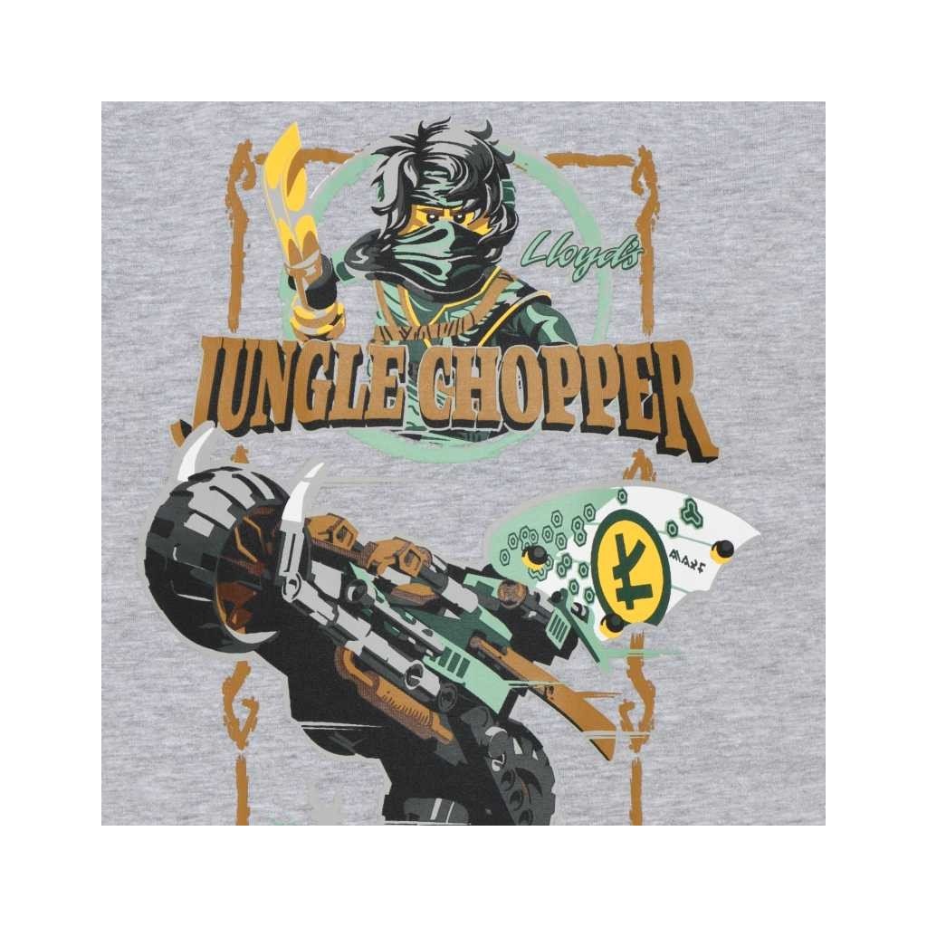 Na prednej strane tohto skvelého trička LEGO® NINJAGO® pre deti je veľká potlač Lloyd’s jungle chopper. Potlač je motívom Mystery Island. Rebrovaný golier, krátke rukávy, príjemný materiál