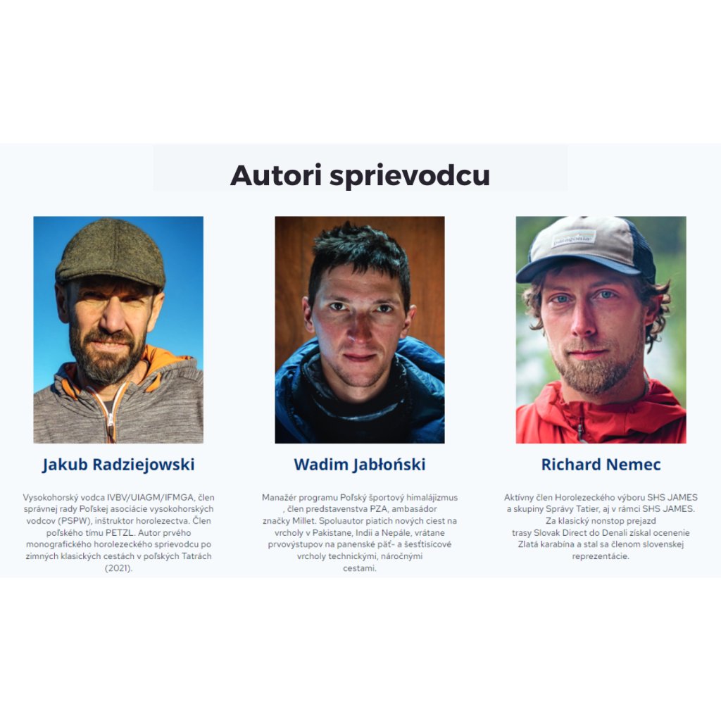 - Hlavnými autormi príručky sú Poliaci aj Slováci. Jakub, Richard a Wadim sa v decembri 2022 počas poľsko-slovenského športového sústredenia horolezcov v Doline Kežmarskej Bielej vody dohodli na princípoch spolupráce a zaviazali sa pripraviť výber 100 najzaujímavejších zimných klasických trás na slovenskej strane.