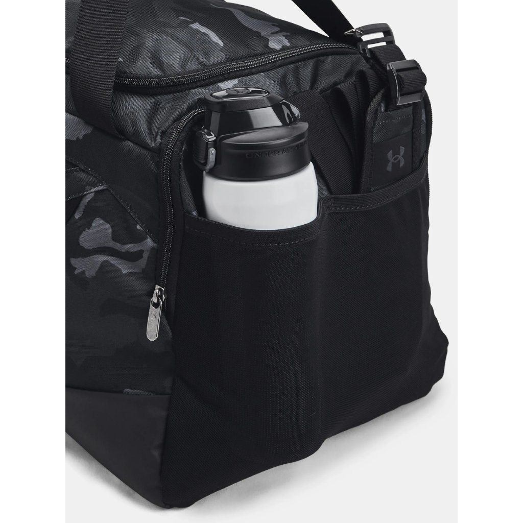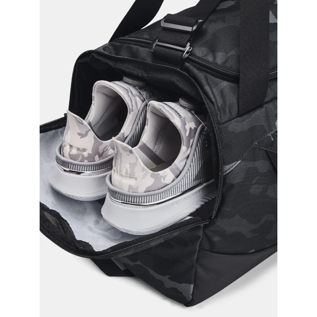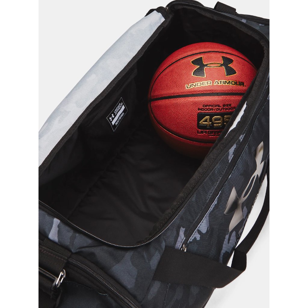 Športová taška Under Armour Undeniable 5.0 Duffle je skvelým spoločníkom do fitka, či na cestovanie. Vyrobená je z odolného materiálu s vodoodpudivou povrchovou úpravou. Spodné a bočné panely sú spevnené a potiahnuté PU pre väčšiu odolnosť. Taška disponuje priestrannou hlavnou komorou s dvoma zipsami. Po bokoch sa nachádzajú bočné vrecká na zips a menšie praktické sieťovinové vrecká na drobnosti či fľašu. Vpredu sa nachádza menšie vrecko na zips. Taška má dva popruhy na prenášanie a ramenný nastaviteľný popruh s polstrovaním.